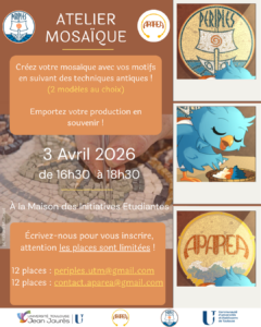 📣Atelier mosaïque – Vendredi 03 avril 2026 – Bâtiment MIE à l’UT2J – gratuit et ouvert à tous !