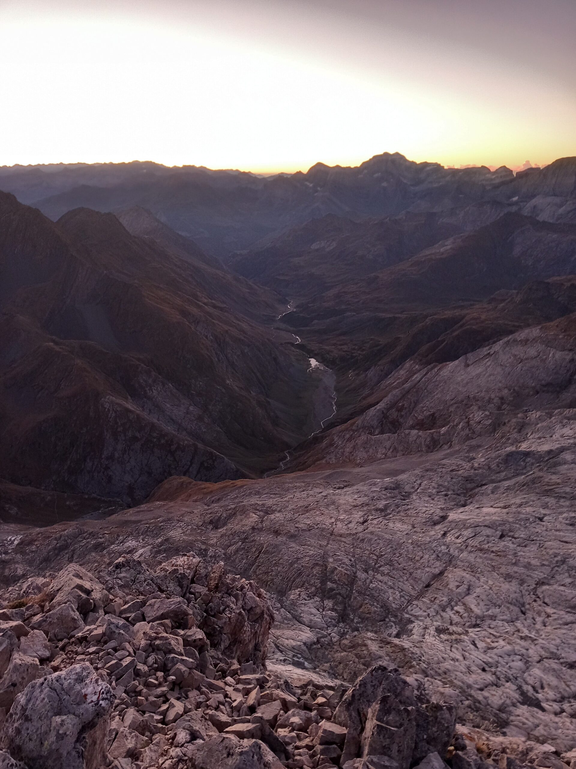 Le massif du Vignemale, dont le sommet est le point culminant des Pyrénées françaises, est sans doute aussi la plus belle face Nord de toute la chaine. Si le refuge des oulettes de Gaube est le meilleur point de vue sur cette face, nous avons fait le choix de passer la nuit au refuge de baysselance, plus haut refuge gardé des pyrénées. La vue sur le cirque de gavarnie y est exceptionnelle. C’est aussi un point d’accès facile pour le petit Vignemale, notre objectif, sans doute l’un des 3000m les plus accessibles des pyrénées, une fois le refuge atteint…