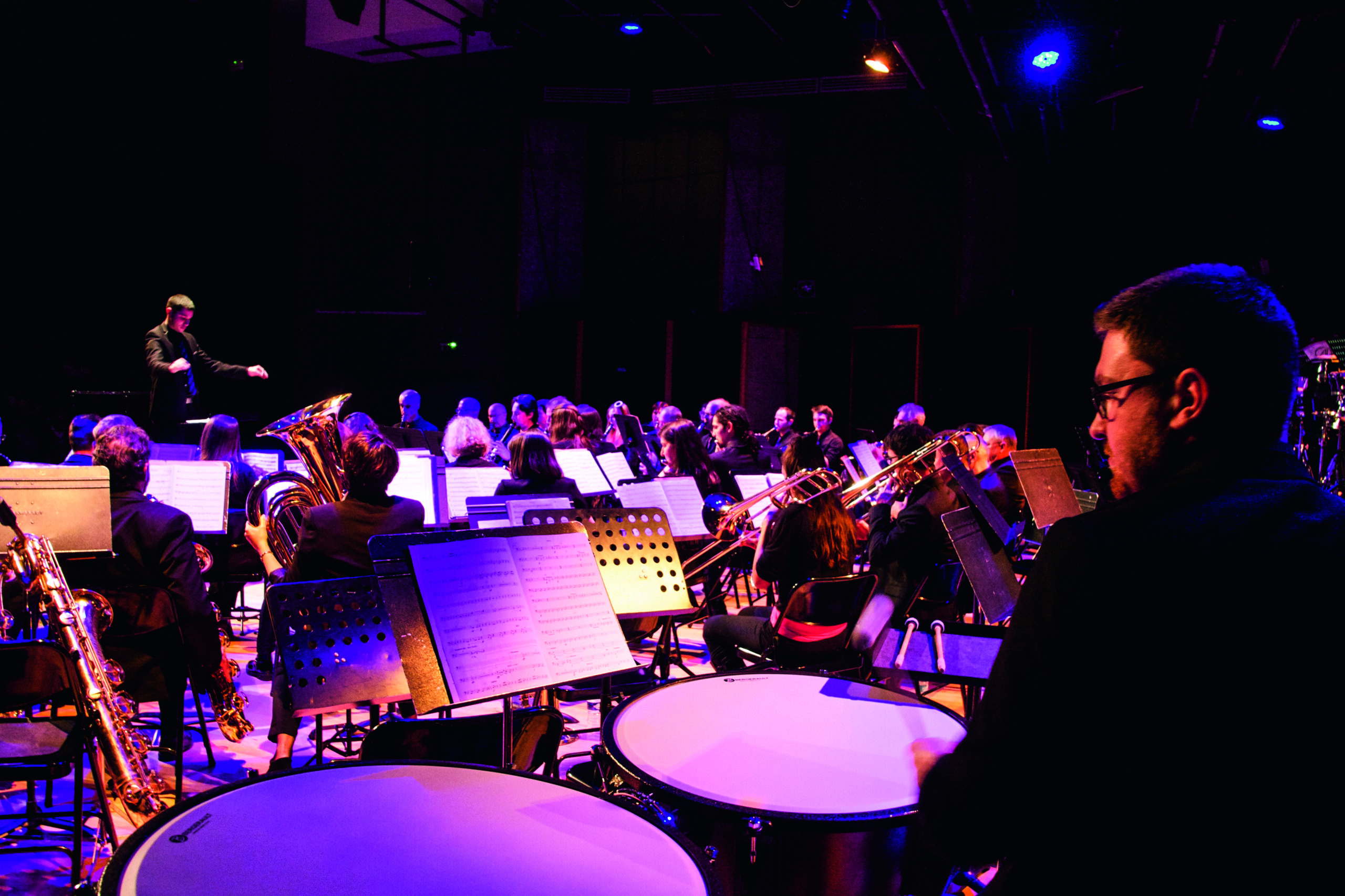 Journée musicale et festive qui a lieu tous les ans au printemps depuis sept années, le festival de musique d’ensemble est un projet qui correspond vraiment à l’état d’esprit de l’harmonie et de l’école. C’est une grande rencontre, un grand rassemblement pour les ensembles amateurs jusqu’à semi-professionnels de la région toulousaine. Cet évènement a été initié en 2019 par le trompettiste et chef d’orchestre de Timothé Bergez, qui est à la direction de l’Harmonie La Garonne depuis 2015 (repéré directement par Françoise Bouzet lors d’un stage organisé par la FSM31 -Fédération des Sociétés Musicales de la Haute-Garonne-). Cet ancien étudiant en trompette et en direction au Conservatoire de Toulouse et de Perpignan succède alors à Guilhem Boisson et insuffle à son arrivée une nouvelle dynamique à l’Harmonie La Garonne. Les programmes qu’il défend sont très éclectiques, avec une place importante pour le « vrai » répertoire d’harmonie, avec notamment une grande place accordée aux compositions originales, en particulier de compositeurs de la région (dernière en date : une commande au saxophoniste, arrangeur et compositeur audois et ancien étudiant au conservatoire de Toulouse, à la grande carrière nationale, Gilles Arcens -grand ami de Françoise Bouzet). Le nouveau répertoire inclut également des musiques de films ou de jeux vidéos, des arrangements de thèmes jazz ou encore des musiques du monde. De son premier professeur en direction à Toulouse, Jean-Guy Olive, Timothé Bergez a, semble-t-il, gardé la volonté d’explorer touts les genres et les esthétiques, mais aussi celle de pousser en permanence -mais en toute bienveillance- les musiciens à leur maximum, pour créer une véritable dynamique de progression et d’investissement individuel et collectif (qui semble porter ses fruits car La Garonne est aujourd’hui largement reconnue et sollicitée dans toute la région, attirant dans ses rangs beaucoup d’élèves du Conservatoire et plusieurs musiciens semi-professionnels et même professionnels). C’est donc le jeune chef Timothé Bergez qui en 2018 soumet cette idée à Françoise Bouzet, qui l’encourage immédiatement à mener à son terme le projet et lui apporte le soutien de l’école. L’envie du chef d’orchestre de La Garonne est de faire jouer dans la même journée des formations aussi variées que des fanfares, des harmonies, des big bands, des brass bands des ensembles de musique de chambres, des chorales et des orchestres à cordes. Timothé Bergez, désire également organiser cet évènement dans la ville dont il est originaire, Ramonville. La première édition se déroule ainsi à la salle des fêtes de Ramonville, gracieusement prêtée par la ville, et est immédiatement un succès. Depuis, l’évènement s’est « institutionnalisé », et est à présent à l’affiche de l’agenda de la mairie de Ramonville. L’ambition, toujours la même depuis la première édition, est claire et double : faire se rencontrer des musiciens de différents horizons qui ne sont que très rarement amenés à se croiser, et surtout « faire connaître toutes les musiques au public » (comme le dit Françoise Bouzet). Et le pari est à chaque fois rempli : des musiciens admiratifs devant les ensembles qu’ils connaissent le moins et un public conquis qui découvre avec plaisir plusieurs formations instrumentales (ou chorales!) et s’ouvre ainsi à plusieurs styles de musique (l’interprétation de la 7ème symphonie de Beethoven par la Chambre Symphonique de Toulouse en étant, cette année, l’exemple parfait : « même les musiciens qui ne sont pas classiques ont appréciés » affirme Françoise Bouzet avec un peu d’humour). Cette année la programmation allait du Jam’it Big Band à la chorale Babel Canto en passant par l’harmonie H2O (avec de nombreux « interludes » de fanfares en extérieur) et c’est bien sûr l’harmonie La Garonne qui clôturait comme chaque fois la journée! 956 personnes se sont déplacés (en plus des 250 musiciens) et compte parmi elles beaucoup de familles, et des enfants qui souvent assistent à leur premier concert, et découvrent avec un grand sourire les différents instruments de musique et les formations à chaque fois si différentes : pari gagné!